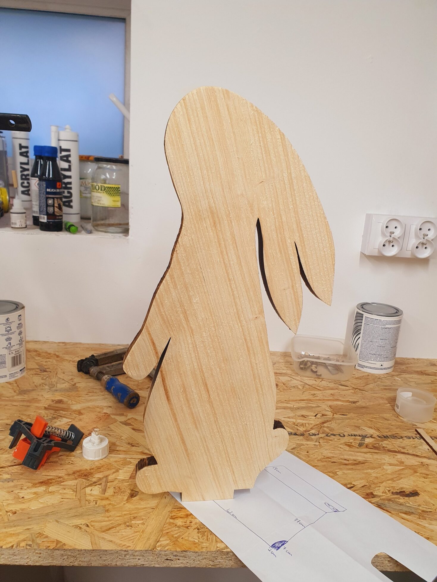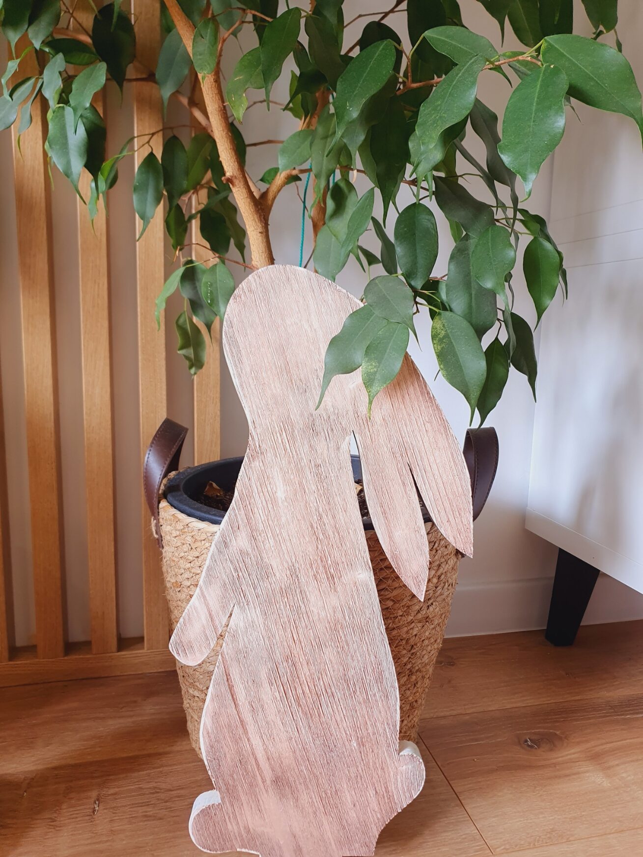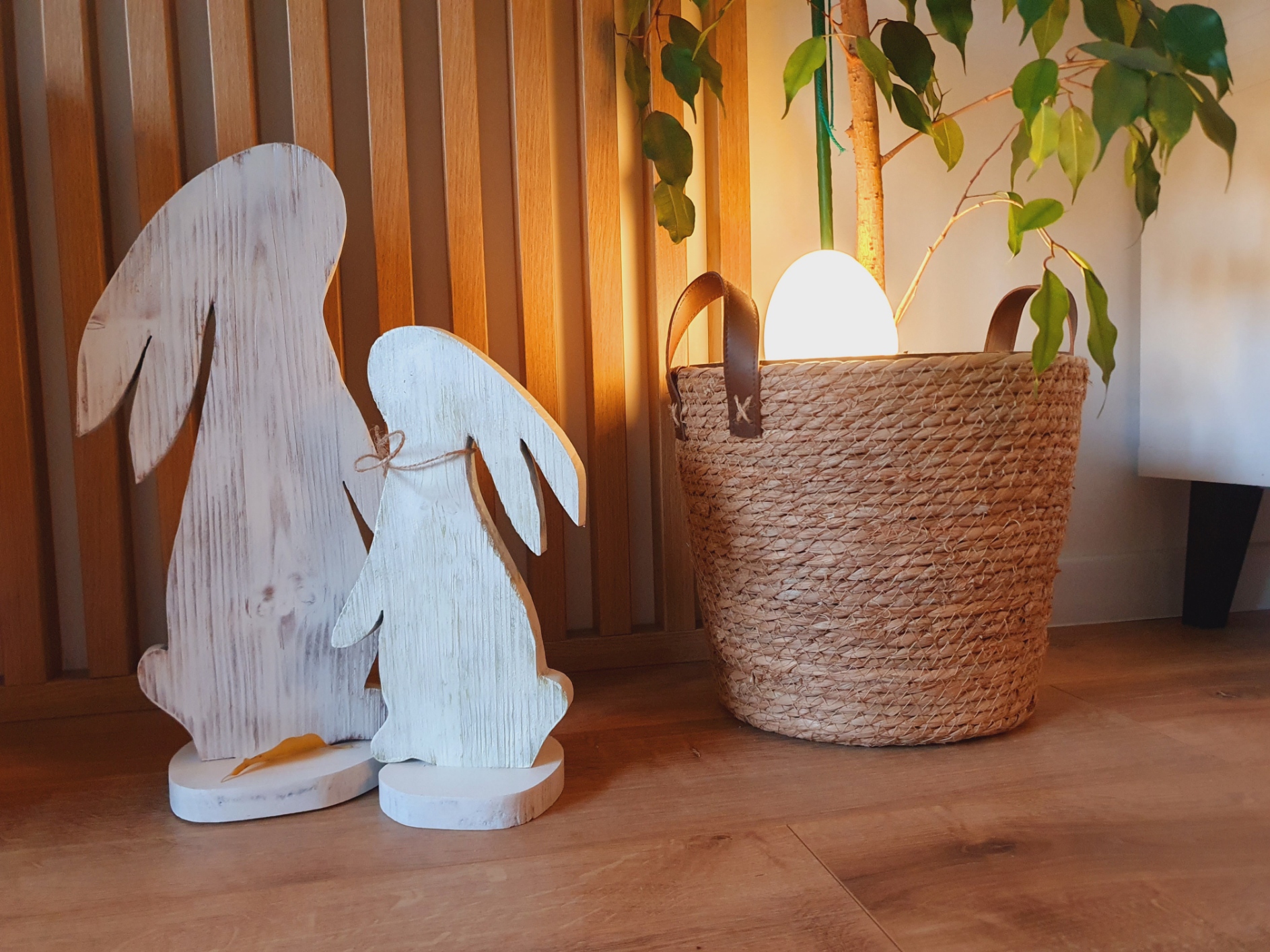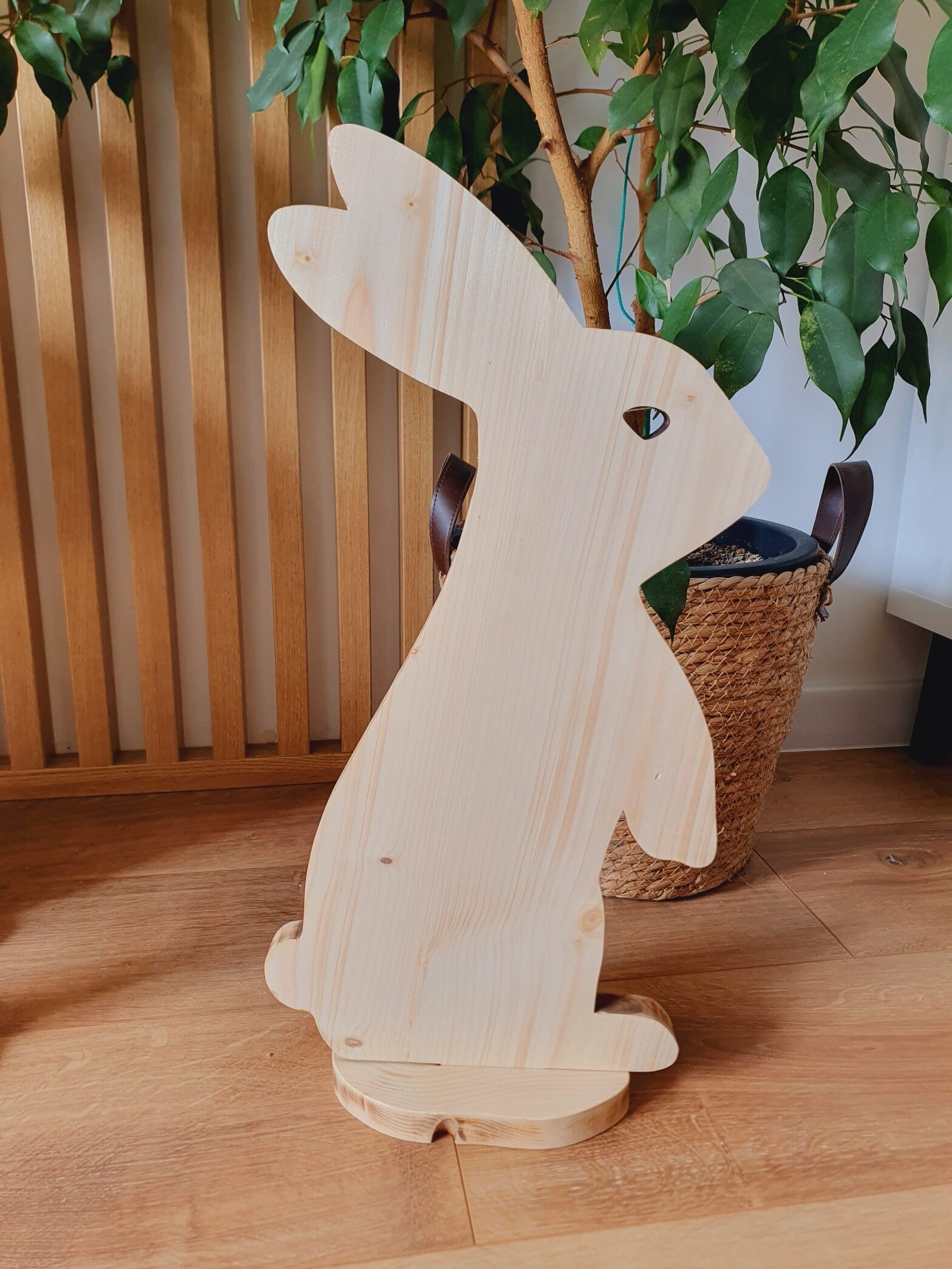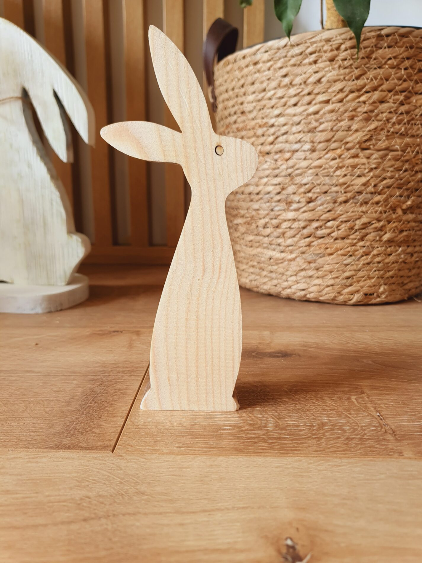 Piękne zające wykonane z deski świerkowej, szczotkowane i malowane.