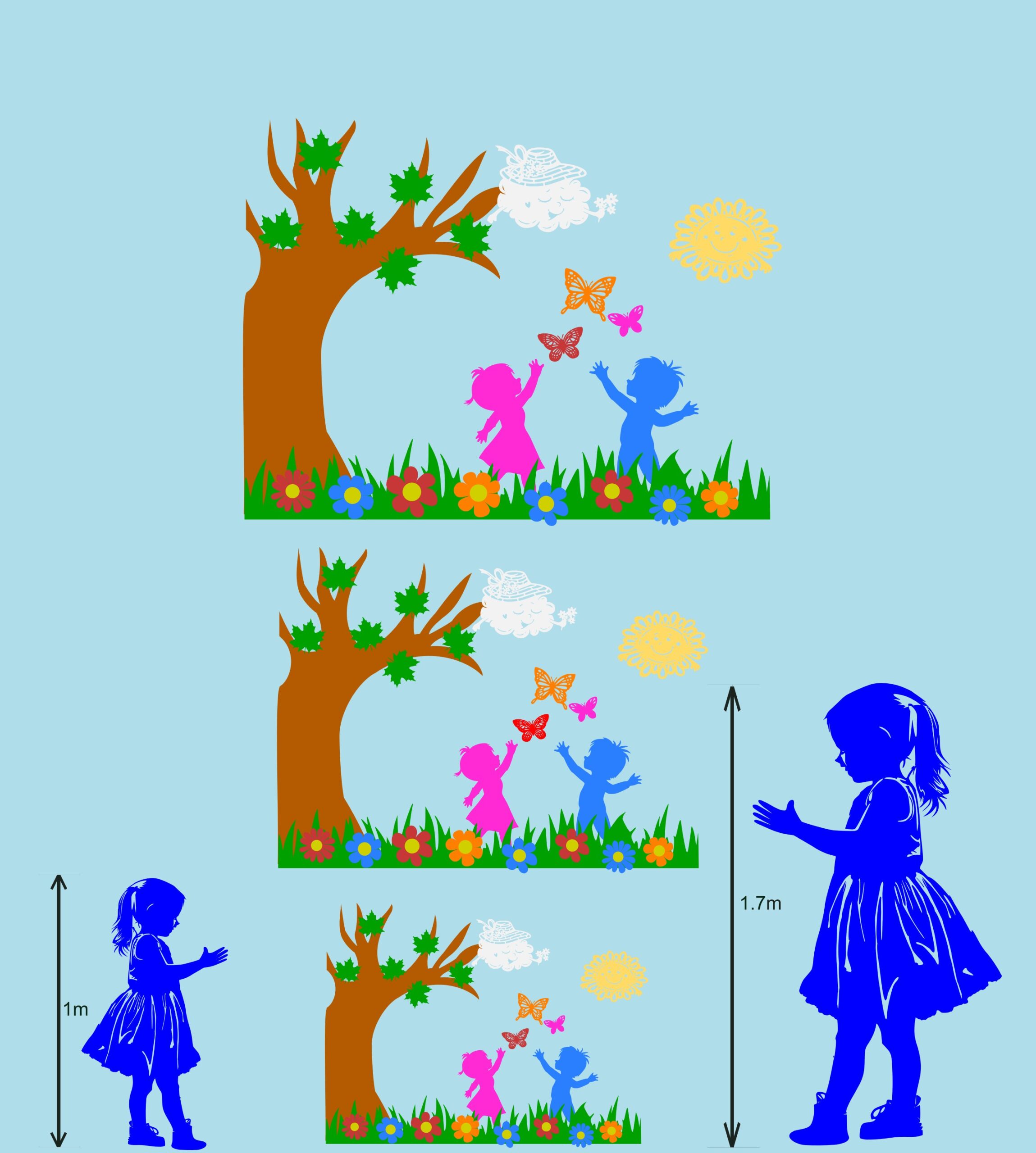 XL- wysokość 150 cm szerokość 200 cm (wysokość dzieci ok 58cm, kwiaty 16cm)